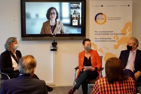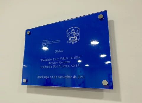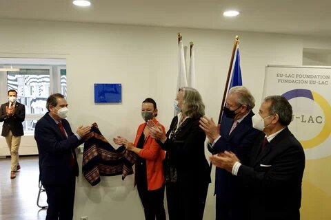 In the framework of its 10th anniversary, on 23 November 2021, the EU-LAC Foundation renamed its meeting room "Ambassador Jorge Valdez Carrillo", commemorating its first Executive Director, who passed away in 2020. The event was attended by Mrs Leire Pajín (President of the EU-LAC Foundation), Ambassador Gonzalo Gutiérrez Reinel (Ambassador of Peru to Belgium and Luxembourg, Head of Mission to the European Union), and Mrs Corinna Nienstedt (Head of State Office Hamburg). In addition, connected by virtual means, Mrs Bettina Trüb - the first employee of the EU-LAC Foundation who, together with Ambassador Valdez, significantly supported the first steps of this young organisation - was also present. The commemoration took place in the framework of the 10th Anniversary of the EU-LAC Foundation, thus paying tribute to its work for the strengthening of the EU-CELAC strategic partnership.