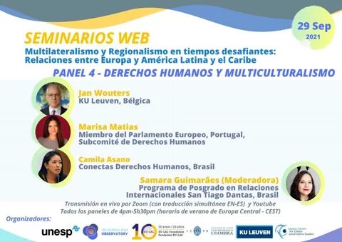Este cuarto panel forma parte de una serie de webinarios denominada "Multilateralismo y regionalismo en tiempos difíciles: las relaciones entre Europa y América Latina y el Caribe" y se centrará en el tema "Derechos Humanos y Multiculturalismo".